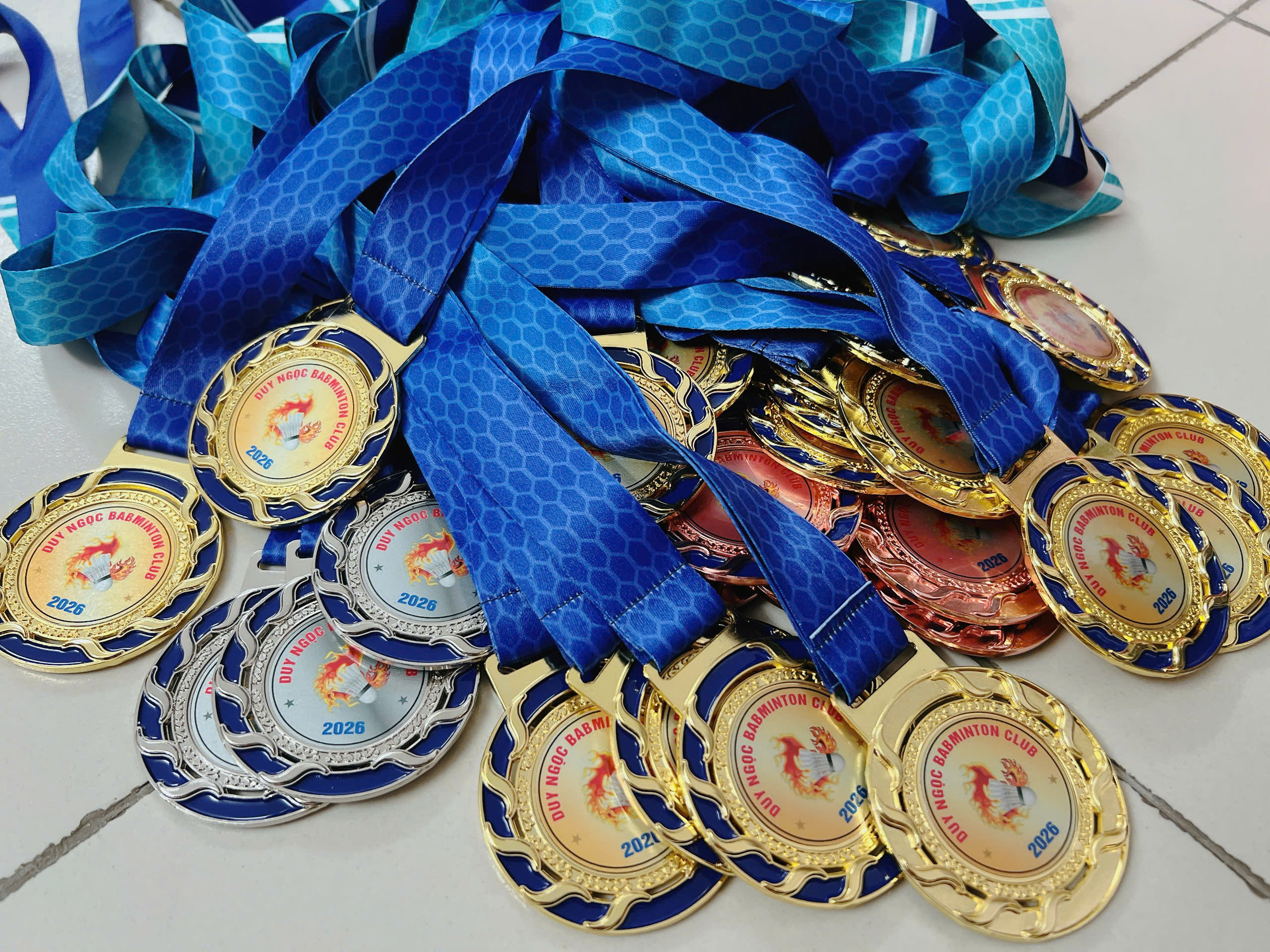 Về chất liệu, huy chương kim loại thường được sản xuất từ các hợp kim như kẽm, đồng, sắt hoặc thép không gỉ. Đây là những vật liệu có độ cứng cao, khả năng chịu lực tốt và đặc biệt là dễ gia công để tạo nên những chi tiết tinh xảo. Tùy theo yêu cầu, bề mặt huy chương có thể được mạ vàng, mạ bạc hoặc mạ đồng nhằm phân biệt thứ hạng cũng như tăng tính thẩm mỹ. Công nghệ mạ điện hiện đại giúp lớp phủ bền màu, chống oxy hóa và giữ được độ sáng bóng trong thời gian dài.